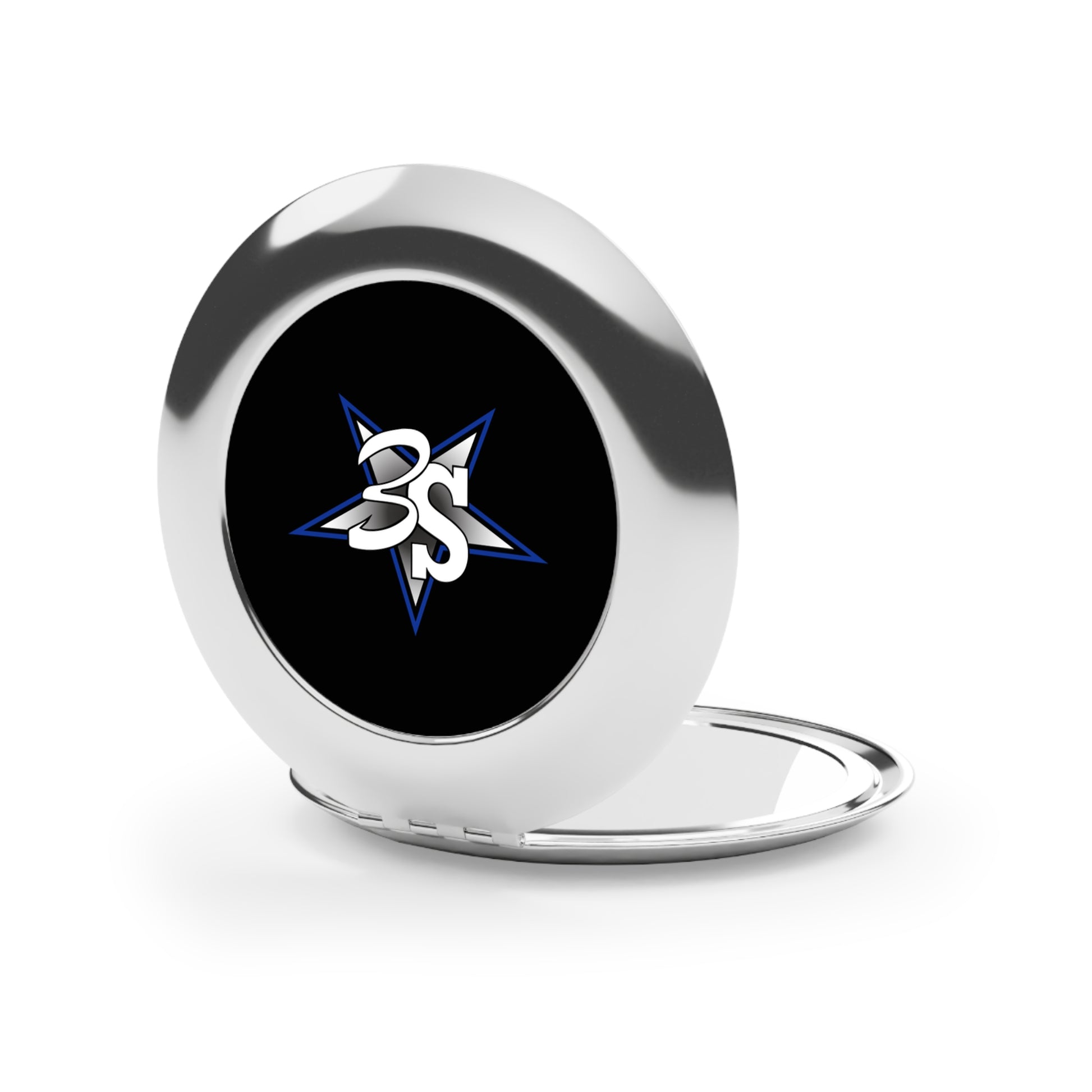 This personalized compact mirror is the perfect makeup gadget for touching up on the go. Made to be travel-friendly, cute, and shiny, it comes with a secure-snap friction closure, a sleek round shape and a metal finish for extra stylish points. Put your designs on the white metal insert and create the perfect travel makeup mirror.